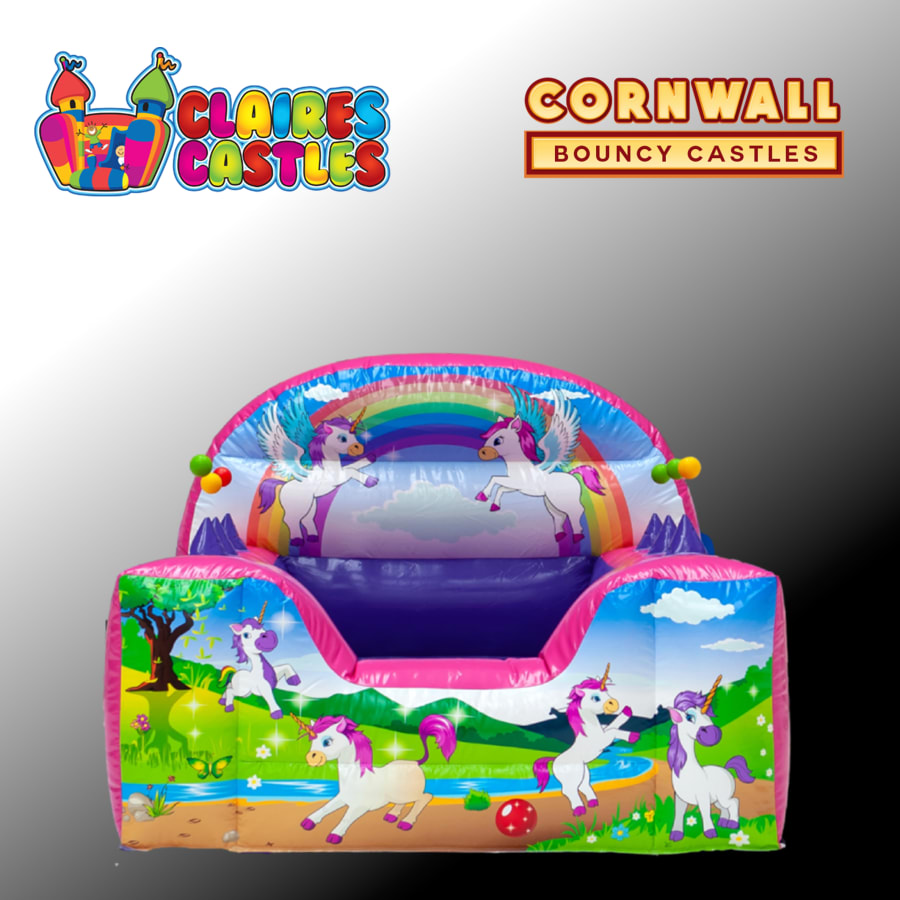 Our fantastic Unicorn Ball Pool is great for any hall. It is supplied with approx 1000 commercial type plastic balls and incorporates magic floating ball air jugglers. It has modern Unicorn artwork.