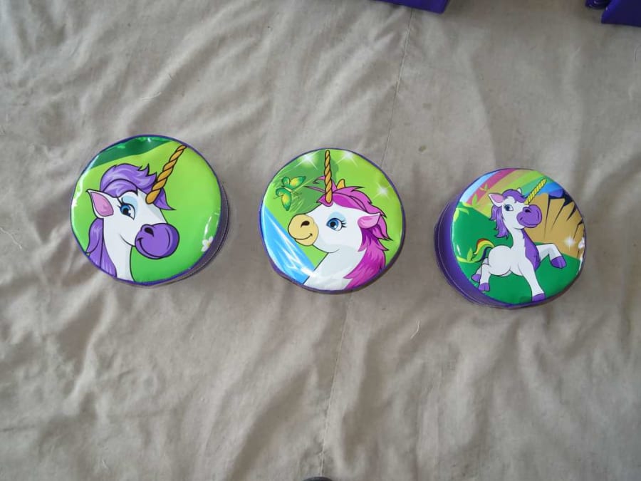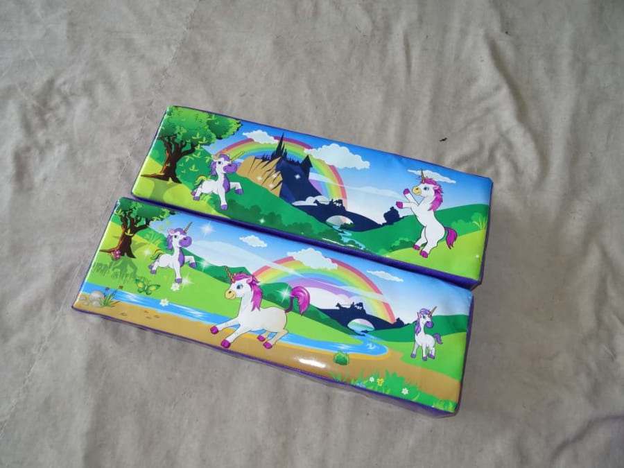 Included is fantastic digital printed Unicorn Soft Play set and a pink and purple didicar.