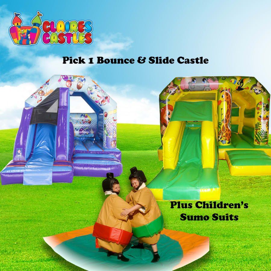 Here we combine your choice of 1 bouncy castle (up to 12x12 size) and the children's sumo suits to make you a great saving.