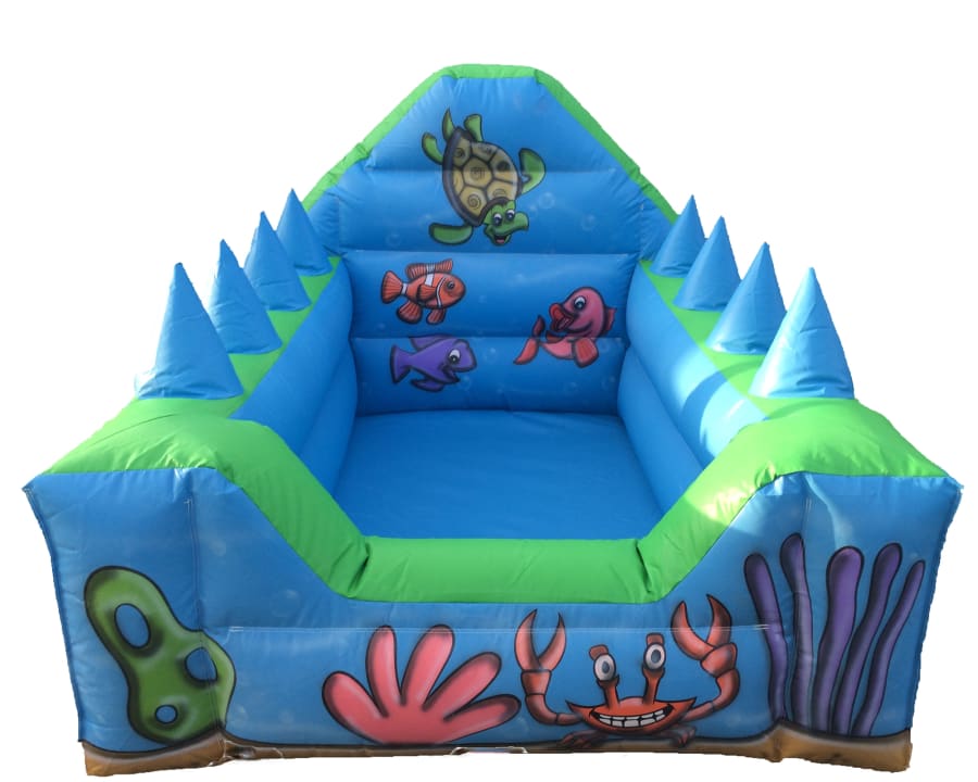 It is supplied with approx 1000 commercial type plastic balls and incorporates 8 magic floating ball air jugglers. It has a modern Undersea airbrushed theme. Also Included is a great digital printed 10 piece Undersea Soft Play set and a 9 piece Soft Play Undersea Jigsaw.