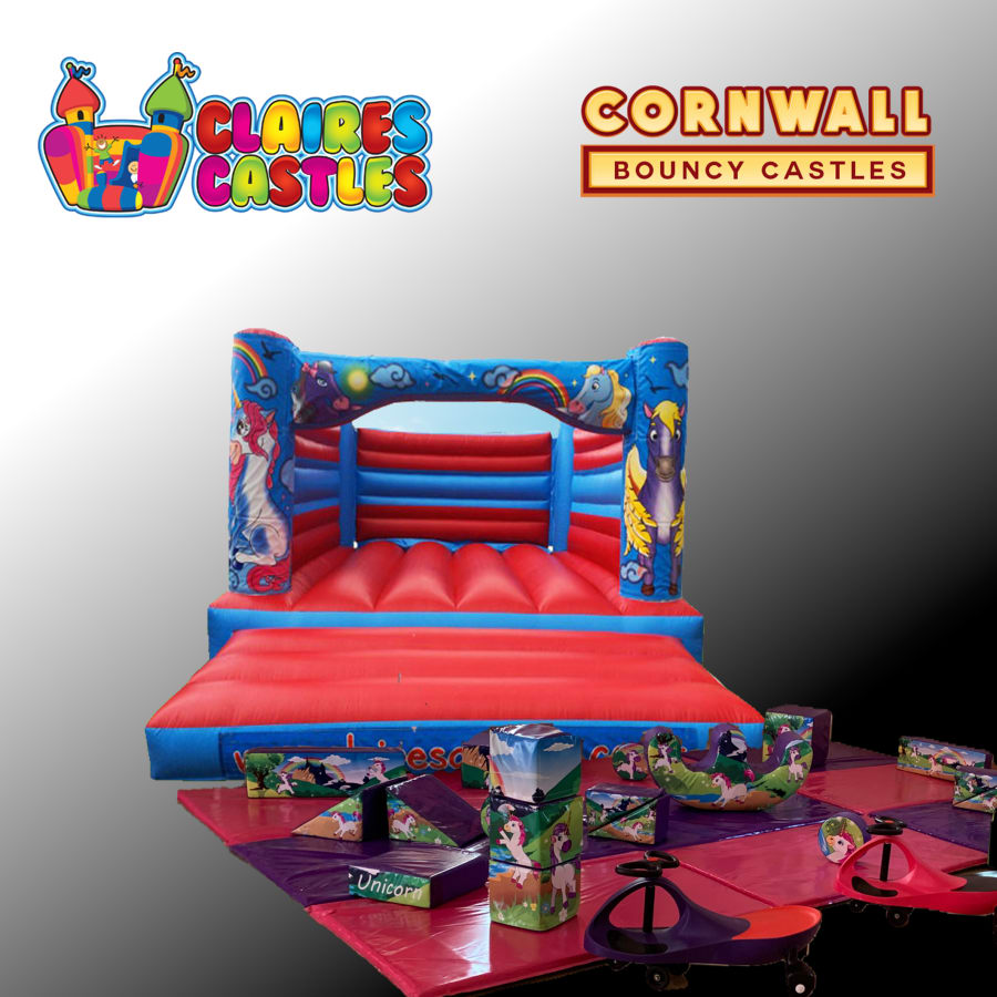 Our Unicorn & Ponies theme bouncy castle features digitally printed velcro artwork which will make your children's party a great hit.